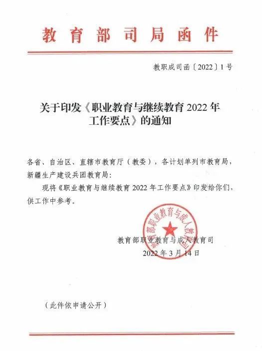 教育部职成司印发《职业教育与继续教育2022年工作要点》,13项重点任务