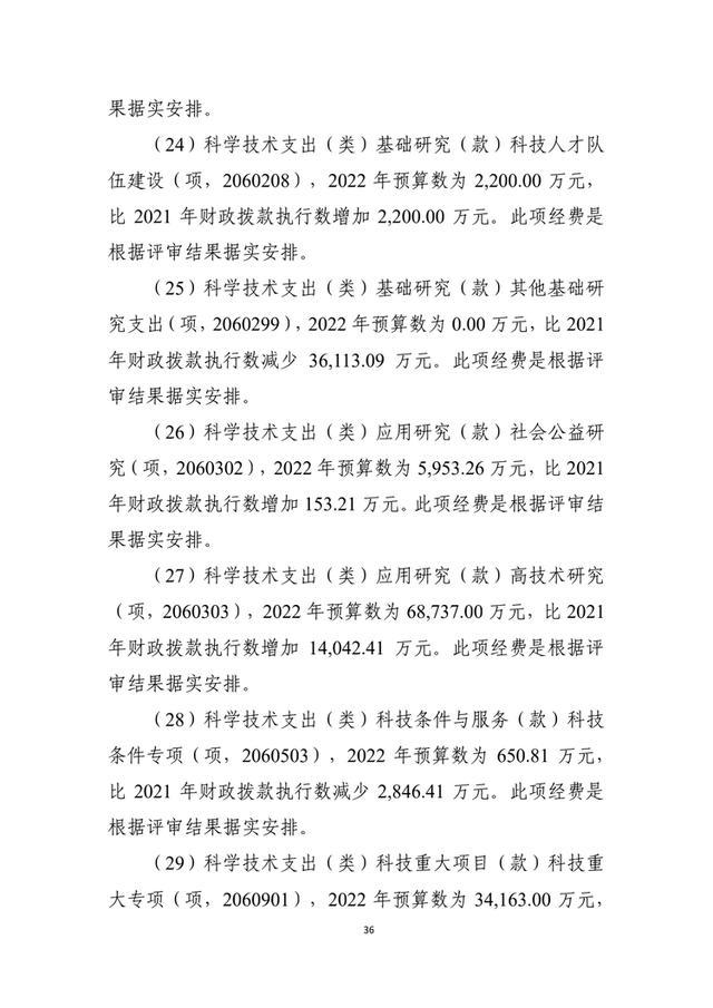 科学技术支出(类)科技重大项目(款)科技重大专项(项,2060901),2022年预算数为 34,163.00 万元,比2021年财政拨款执行数增加 15,314.45 万元。