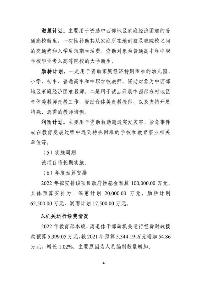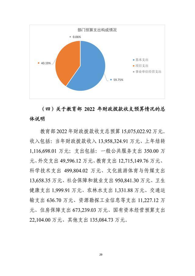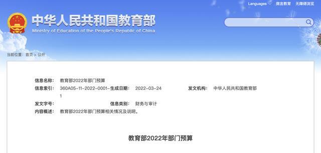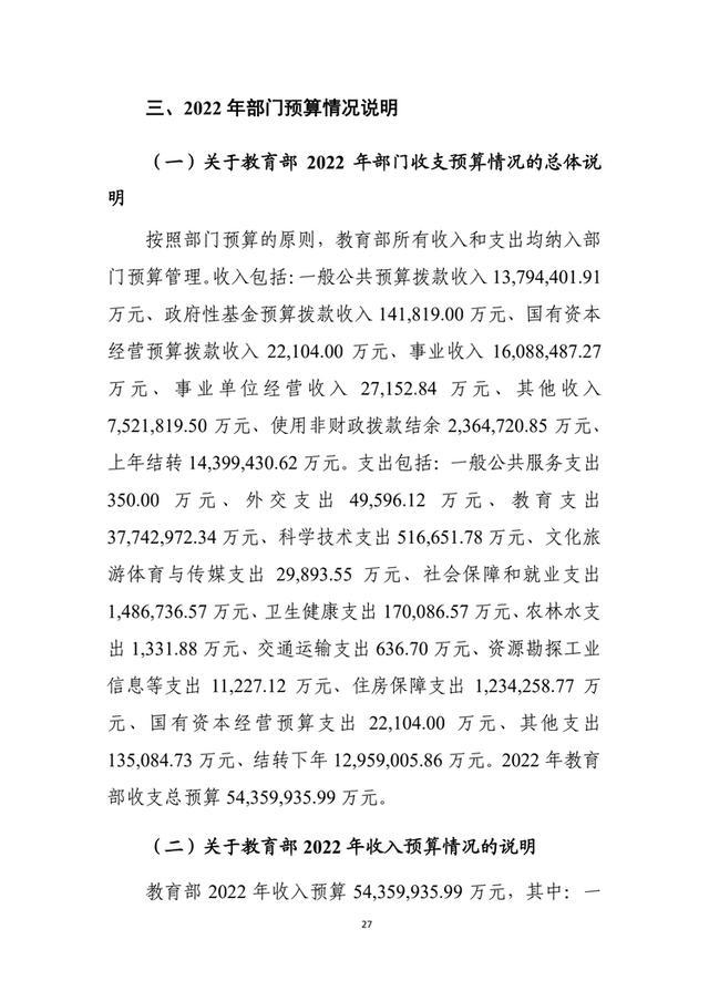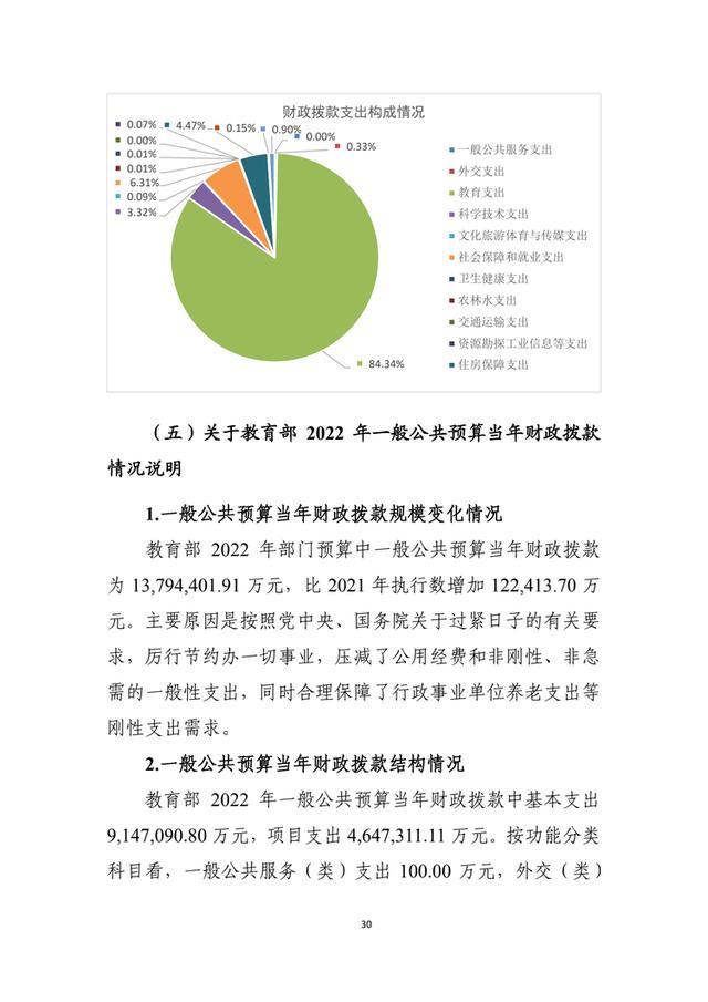 3月24日,教育部官方网站公布了教育部2022年部门预算。预算文件显示,教育部2022年部门预算中一般公共预算当年财政拨款为 13,794,401.91 万元,比 2021年执行数增加 122,413.70 万元。
