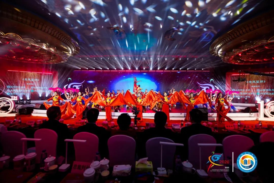 在开场舞蹈《龙凤呈祥》的欢腾氛围中,2020年全国高等学校民航服务技能大赛闭幕式暨颁奖晚会隆重开启。