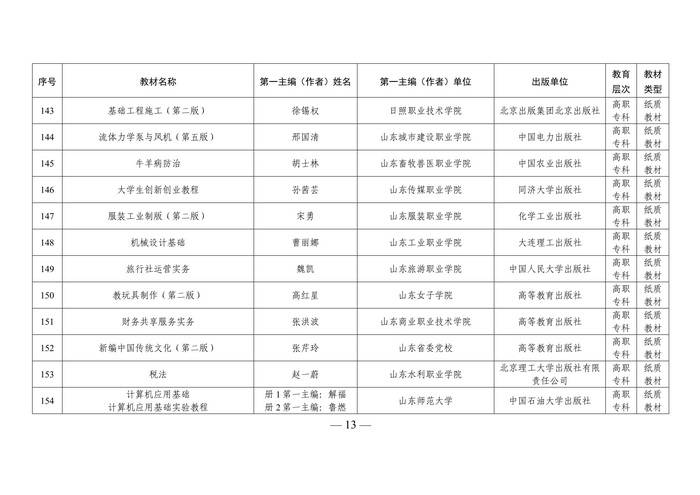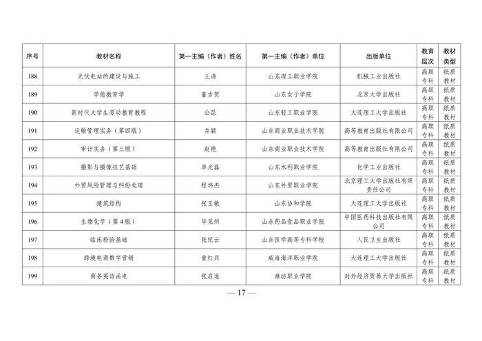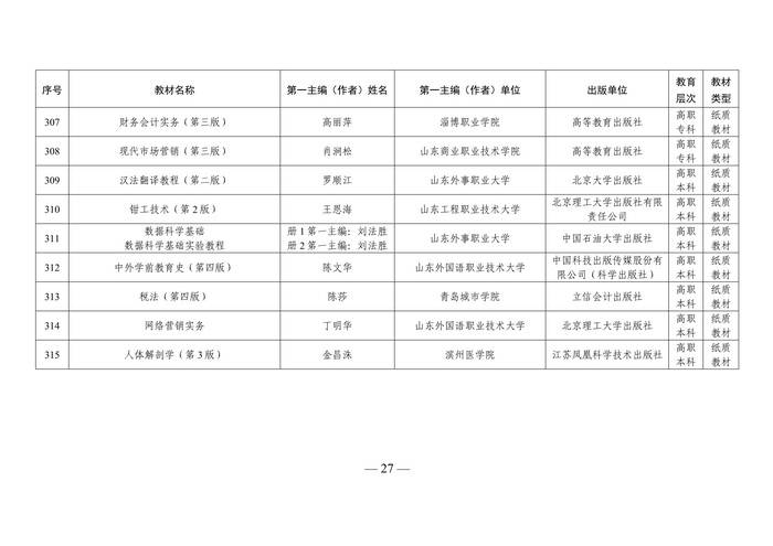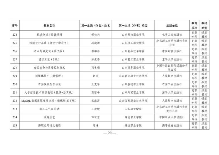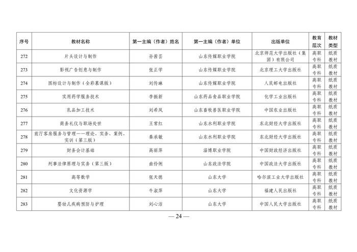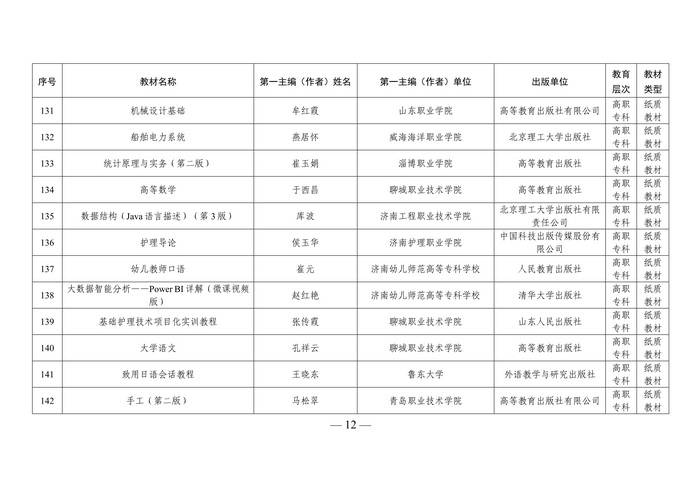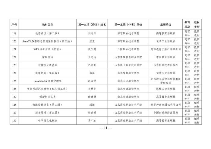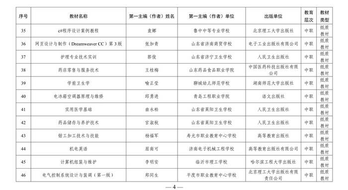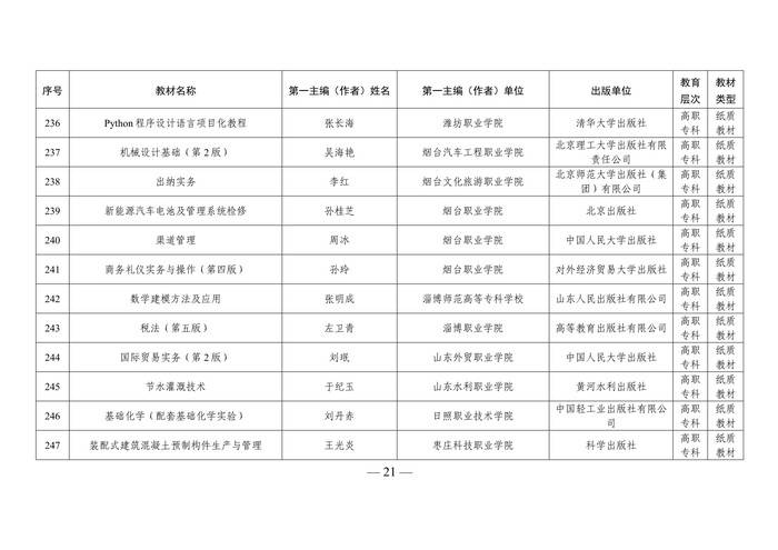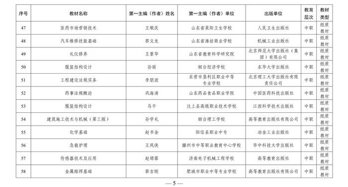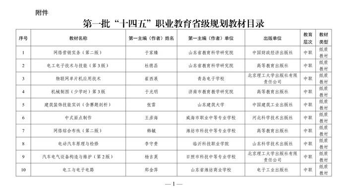 山东省教育厅关于公布第一批“十四五”职业教育省级规划教材的通知