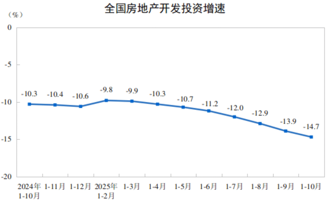11月14日,国家统计局公布的全国房地产市场基本情况显示,1-10月份,全国房地产开发投资73563亿元,同比下降14.7%;新建商品房销售面积71982万平方米,同比下降6.8%;新建商品房销售额69017亿元,下降9.6%。 国家统计局新闻发言人、总经济师、国民经济综合统计司司长付凌晖在国新办发布会上表示,今年以来,各地区各部门加快出台实施各项支持性政策,积极释放刚性和改善性住房需求,推动房地产市场止跌回稳。从统计数据来看,房地产市场虽有所波动,但政策成效仍在继续显现。 开发投资增速连续下滑 具体来看,房地产开发投资增速方面,1-10月份,全国房地产开发投资73563亿元,同比下降14.7%;其中,住宅投资56595亿元,下降13.8%。 上海易居房地产研究院副院长严跃进认为,该指标处于深度调整过程中,说明稳投资很关键,尤其要从固定资产投资稳定的角度做好房地产投资稳定工作。 据付凌晖介绍,房地产行业调整对投资增速下拉作用比较明显。1-10月份,扣除房地产开发投资后的项目投资增长1.7%,房地产开发投资下降下拉全部投资3个百分点。 在严跃进看来,从一些重点城市来看,开发投资指标保持积极态势,部分城市好地段项目的土地交易积极活跃。尤其是一些城市更新节奏快、效果好的区域,其房地产开发投资的各个环节积极有序。 房屋新开工和竣工面积方面,降幅均有所扩大。数据显示,1-10月份房地产开发企业房屋新开工面积49061万平方米,下降19.8%。其中,住宅新开工面积35952万平方米,下降19.3%。房屋竣工面积34861万平方米,下降16.9%。其中,住宅竣工面积24866万平方米,下降18.9%。 严跃进表示,新开工指标和房地产开发投资指标有关,所以数据层面会有所传导,要进一步做好新开工的政策支持工作。从各地一些好的做法来看,例如,拿地即拿证等政策支持力度很大,也使得开工环节持续改善。当前市场上一些房企债务压力小、开工动力强,将成为新一轮房地产开发投资中的示范代表。同时,年底要进一步做好竣工工作,尤其是做好保交房。明年还要持续做好三件事:一是,楼盘的保交房要和销售提振工作结合;二是,要持续拓宽资金来源;三是,要加快存量资产的盘活力度。 从到位资金情况来看,指标继续下降。1-10月份,房地产开发企业到位资金78853亿元,同比下降9.7%。其中,国内贷款12160亿元,下降1.8%;利用外资19亿元,下降37.5%;自筹资金28419亿元,下降10.0%;定金及预收款23257亿元,下降12.0%;个人按揭贷款10834亿元,下降12.8%。 对此,严跃进建议,各地进一步做好资金方面的工作,持续研究市场需求和潜力,尤其是要做好工薪家庭的购房需求,以需求挖掘促进交易活跃,以交易活跃促进资金面改善。 新房销售降幅收窄 新房销售方面,降幅有所收窄。 根据国家统计局数据,1-10月份,新建商品房销售面积71982万平方米,同比下降6.8%,降幅比去年同期收窄9个百分点;新建商品房销售额69017亿元,下降9.6%,降幅比去年同期收窄11.3个百分点,与去年全年相比也有所改善。 从商品房单月销售情况来看,今年“银十”旺季不旺,销售指标同环比均出现下滑态势。根据国家统计局数据测算,10月新建商品房销售面积为6147万平方米,环比下降27.95%,同比下降19.61%;新建商品房销售额5977亿元,环比下降25.52%,同比下降25.05%。 严跃进表示,各地要深刻认识到房地产供求关系发生重大变化的含义,持续研究销售层面的创新工作。同时,观察四季度以来的销售新情况,尤其是全国TOP10房企销售进度和定价情况,以更好把握市场新信息,确保销售工作提振具有科学性。 商品房库存方面,随着控增量、优存量等房地产政策措施持续发挥作用,今年以来房地产去库存稳步推进。 截至10月末,商品房待售面积75606万平方米,比9月末减少322万平方米,今年以来连续八个月减少。其中,住宅待售面积39645万平方米,减少292万平方米。 这一指标的持续改善,说明各地去库存工作具有积极进展。严跃进认为,今年很多项目都以“好房子”标准推进,使得库存结构持续优化。库存指标增速变缓,也说明供求关系在持续改善,对于后续止跌回稳具有积极作用。 当前市场仍处在新旧模式转换期 整体来看,当前房地产各项指标处于深度调整过程中,进一步做好房地产市场止跌回稳的工作任重道远。 易居研究院建议,各地要关注4月份以来市场的新情况和新动态,持续有力找准问题破解难题,促进市场向好发展。关键要找准“超大规模客群市场”,要持续研究各类购房群体,积极创新金融政策,促进住房市场止跌回稳具有高效性。 国家统计局表示,当前房地产市场还处在新旧模式转换时期,转型调整需要一定时间,在这个过程中,部分指标会出现波动,对此要客观看待。下阶段,要落实好中央城市工作会议精神,积极构建房地产发展新模式,坚持长短结合、标本兼治,持续用力推动房地产市场高质量发展。